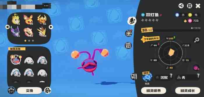 游戏到了中后期,大家(dajia)捕捉(zhuo)到的精灵越来越丰富,可以用一些更便捷的跑图精灵,小编将按照水陆空的顺序给大家(dajia)推荐。走水路的话,推荐双灯鱼和冰钻布鲁斯,另外深海鲸也不错;陆地行走,推荐大头骨龙,不挡视野,能跑能跳速度快;空中飞行,推荐捕尘长绒,飞得快(kuai)的(de)同时还飞得高。