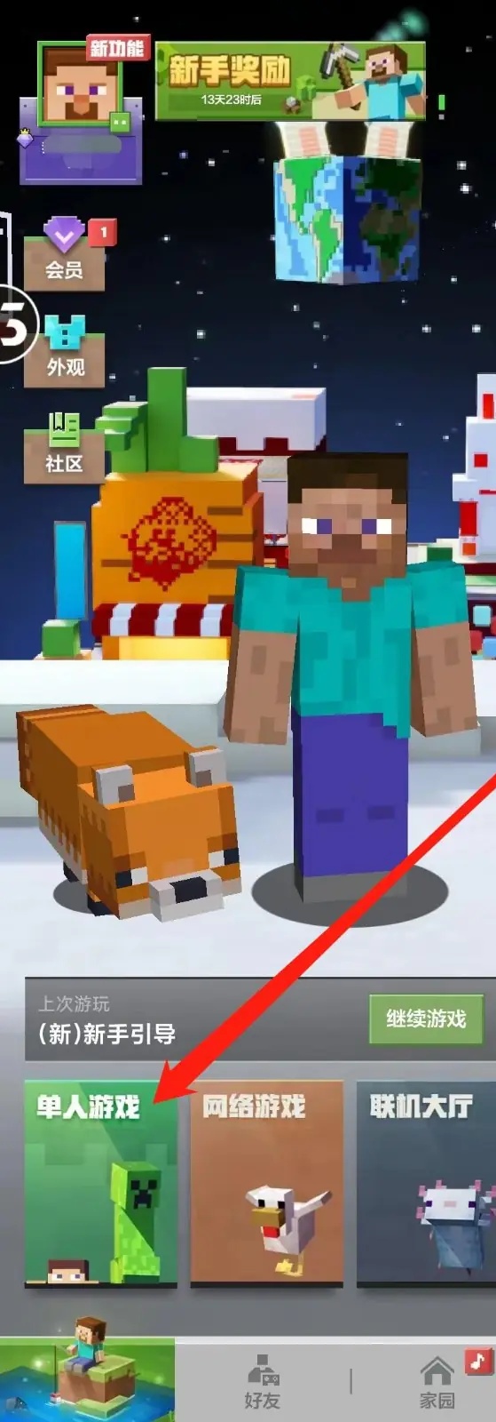 我的世界如何截图网易手游2026点击【单人游戏】;在单人游戏页面,点击【游玩】;在游戏详情页面,这里还有更多内容可以看看下面的介绍。