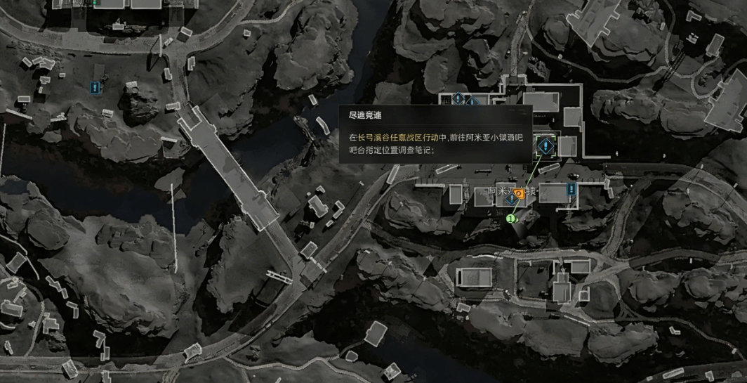 调查笔记:在长弓溪谷任意战区行动中,前往(wang)阿米亚小镇酒吧吧台指定位(wei)置调查笔记。