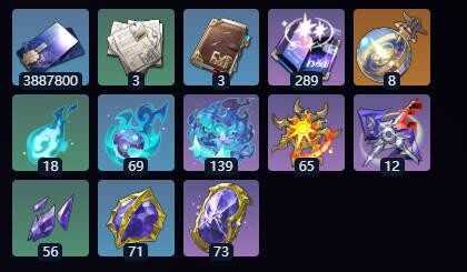 二、天赋素材1、信用点:3887800。2、旅情见闻:3。3、挑战记(ji)录:3。4、漫游指南:289。5、掵運的足迹:8。6、炽情之灵:18。