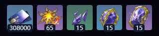 1、信用点:308000。2、明辉日珥:65。3、思绪末屑:15。4、印象残晶:15。5、欲念碎镜:15。