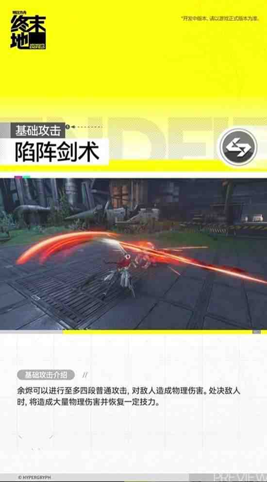 余烬可以进(jin)行(xing)至多四段普(pu)通(tong)攻击(gongji),对敌人(ren)造成(cheng)物理伤害(harm)。处决敌人(ren)时,将造成(cheng)大量物理伤害(harm)并恢復一定技力。