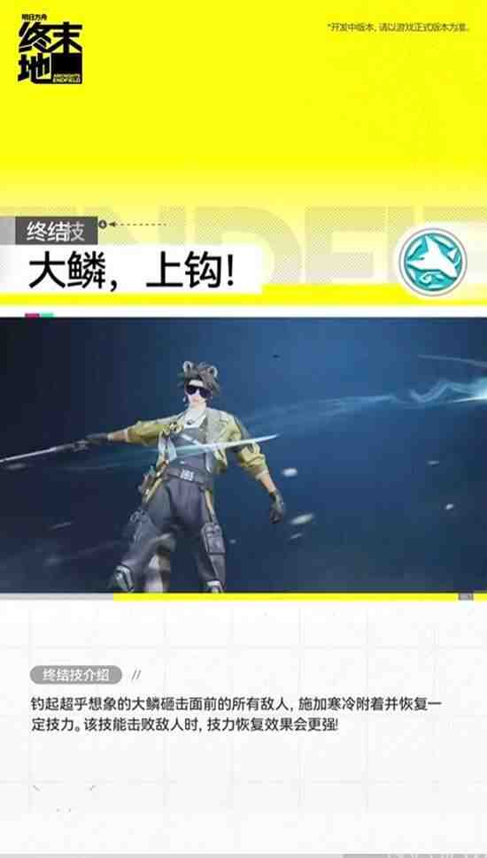 钓起超乎想象的大鳞砸击面前(before)的所(suo)有(you)敌人(ren),施加寒冷附着并恢复一定技力。该技能击败敌人(ren)时,技力恢复效果会更强!