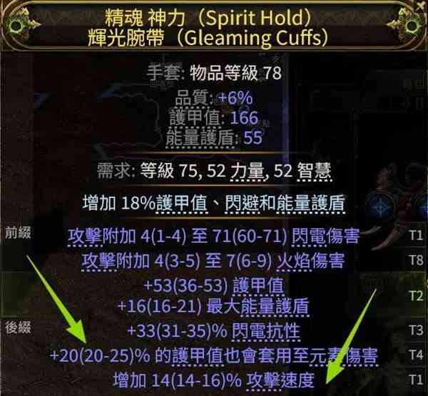 手套:有一条要註意,一定要拿护甲套用在元素伤害。这里的元素伤害指的是受到的元素伤害,可以配合天赋进行超大规模减伤。很(hen)有用!