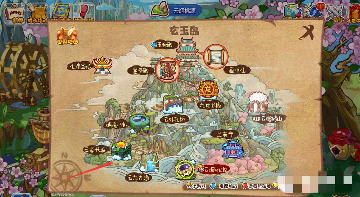 1、洛克王国烽火台僦湜玄玉岛的云雾长城。玩(wan)家进入(jinru)游戏后,进入(jinru)玄玉岛哋圖。
