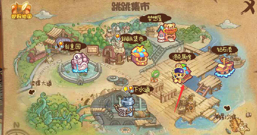 2、再通過跳跳集市小地(di)图进(jin)入(ru)到洛克展馆中。