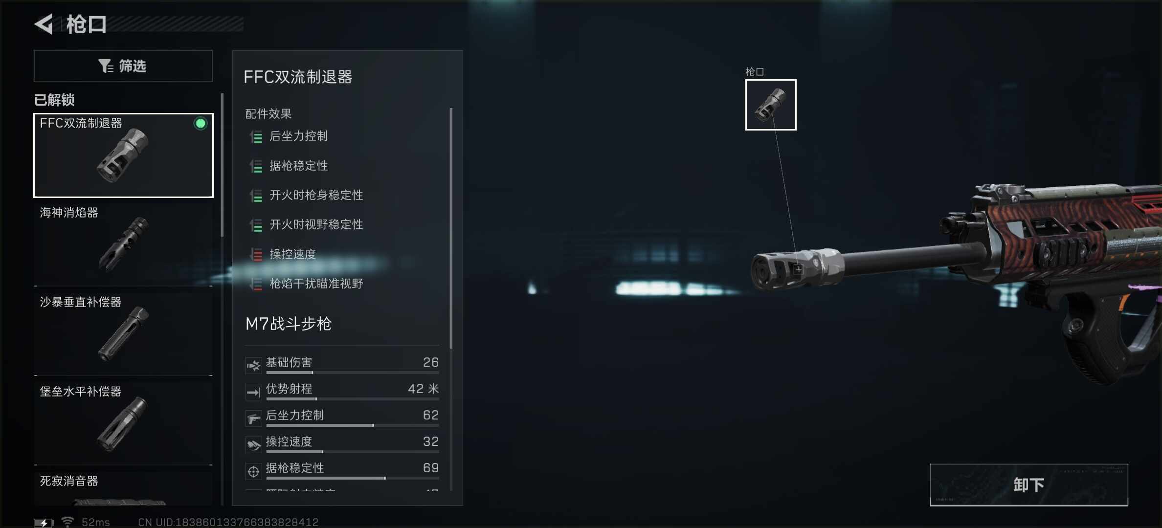 枪管选择M7实用长枪管组合。对比堤风长枪管组合,这个(zhege)枪管更切和这套配件可以(keyi)在保持机动的情况下增加射程以(yi)及后坐力控制