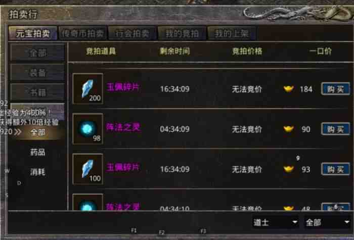 拍卖行每天会不定时的刷新上架更重材料其中就会有大量的玉佩碎片和阵法之灵。这是能快速获得这俩个材料的重要途径。
