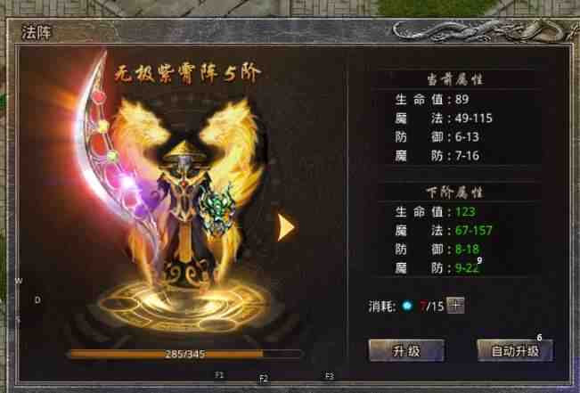 首先(shouxian)我们明白阵法和玉佩的升級都是很直接的需要材料没个等级的消耗材料都是不一样的。