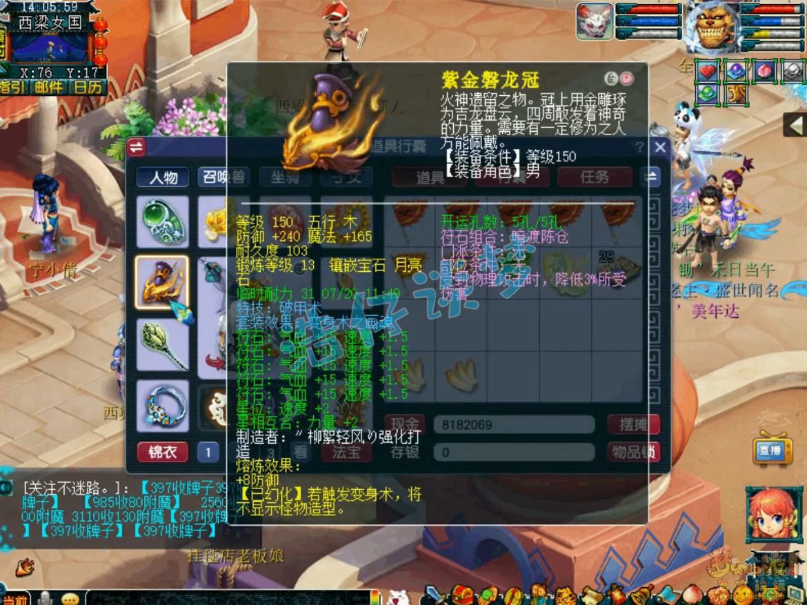 150级带破甲术的画魂套男头,打了13锻月亮石。