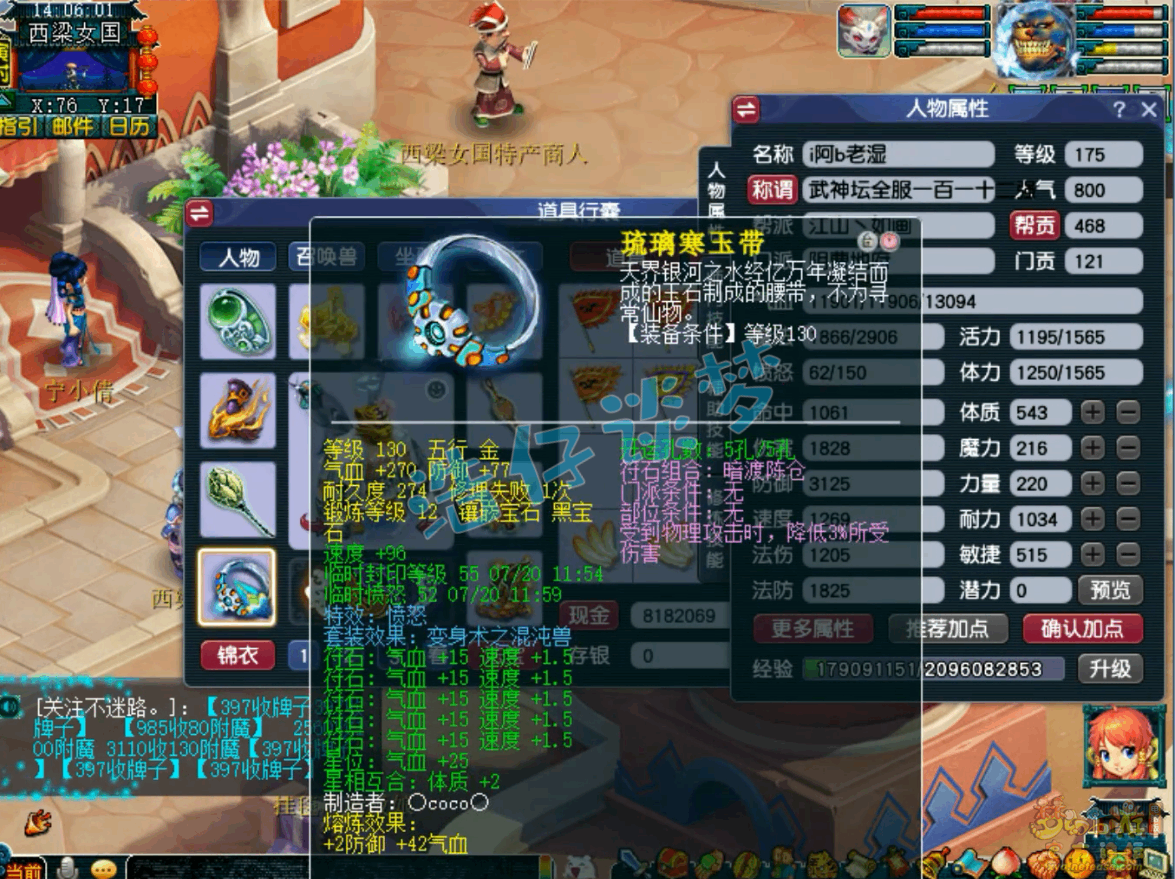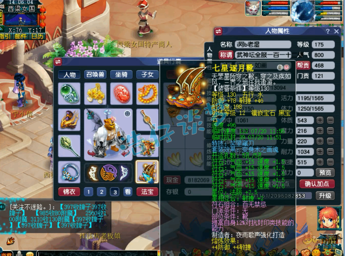130级带笑里藏刀的画魂套鞋子,打了12锻黑宝石。