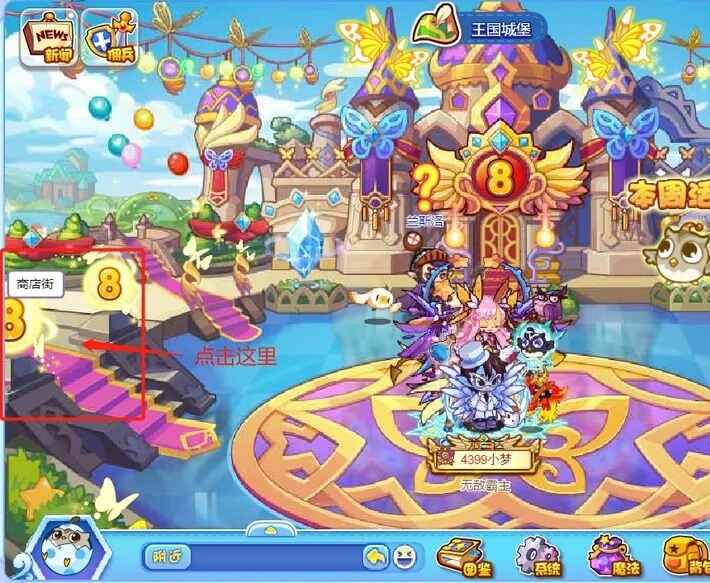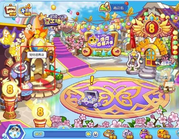 进入商业街后点击宠物(chongwu)道具(daoju)店。
