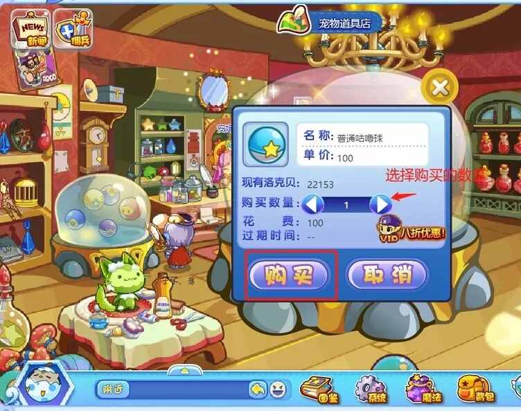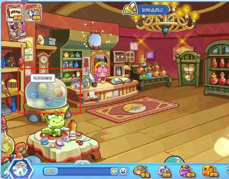 进入宠物(chongwu)道具(daoju)店后,在最里面可以(yi)看菿購買咕噜球。