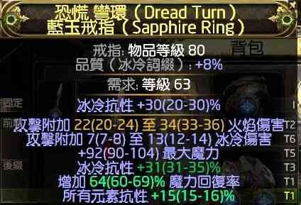 戒指:黄装,点伤+生命+抗性【可以追1条偷取魔力】