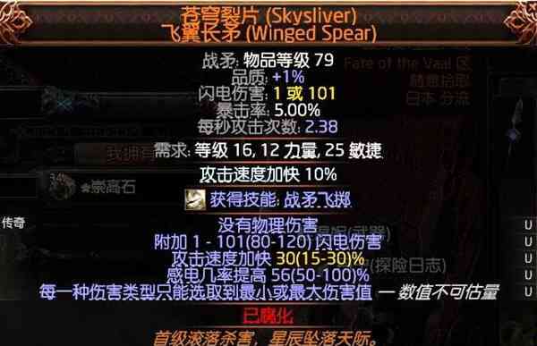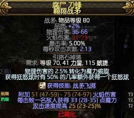 后缀:2%矛攻击速度+2%攻击速度/10%矛暴击伤害/7%攻击暴击率(3选1)