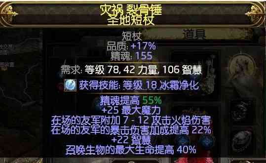 权杖:火焰净化+50%以上精魂+25以上智慧,精魂高于270,火冰电净化都可以