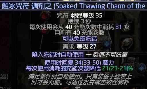 药剂护符:回复提高+充能,岩石护符免晕,解冻护符免冻结,浸润护符面点燃