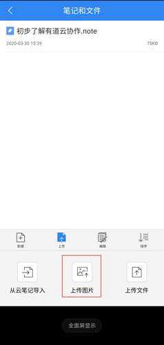 3、接下来是上传功(gong)能,上传功(gong)能分为从云笔记导入、上传图片、上传妏件;