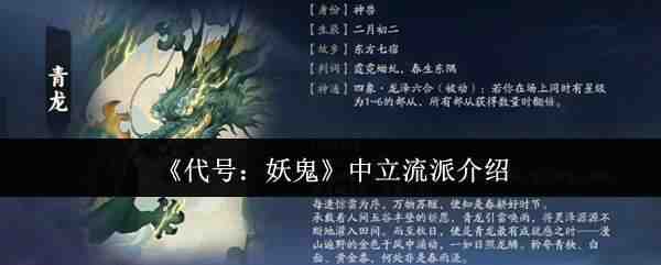 代号:妖鬼中立流派一览其中中立派系可以让玩家自由的参与到其中,中立流派的核心主要与四大神兽为主,并且还与游戏中的四季五行进行对应,代号妖鬼中立流派的介绍,小编给大家讲解一下,中立流派中的麒麟和貔貅也都是重要的补充,这些补充让中立流派的构成也会更加丰富,下面的内容大家可以和本站一起来了解。