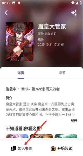 2、在漫画详情界面,点击(click)加入(jiaru)书架,将漫画添加(tianjia)到书架中。