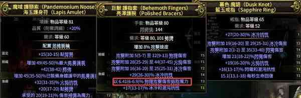 项链40精魂+ 手套点伤 后缀有条件找攻速 戒指点伤+抗性 註意手套戒指找一条(one piece)物理攻击伤害偷取魔力 来解决缺蓝问题(question)