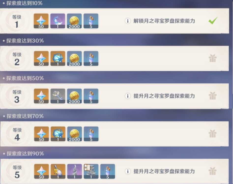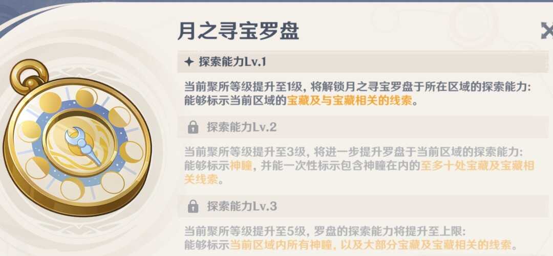 二:三個聚所开启后,即可供奉“月之印”,获得月之寻宝罗盘和升级罗盘等级