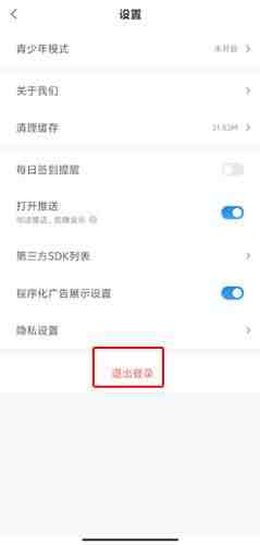 2、在設置页(ye)面中點击退出登录按钮(button);