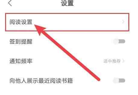 在设置界面(mian)中,点(dian)击(ji)【阅读(read)设置】进入,如图所示。