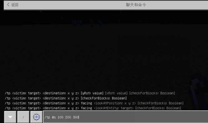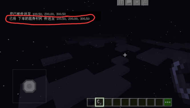 2.输入(enter)格式“/tp 名字(对象) 的目的地的xyz”(xyz是坐标),如图所示。