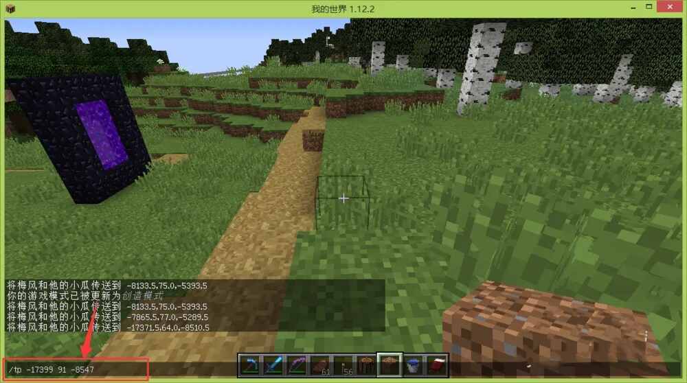 比如(for example)下面我们(women)传送到森林府邸所(suo)在(zai)的地方(difang),坐标是:XYZ对应的-17399、91、-8547。然(ran)后(hou)我们(women)输入/tp-17399 91 -8547,注意中间用空格隔开。输入完毕后按enter键确定,等待几秒就能传送过去了。