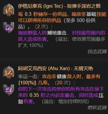 5、劈砍武器要用长柄武器(配合处决者雕文多15%增伤),武器上需要有幸运易伤词缀。带星光威能的情况下不需要任何(renhe)减耗和幸运回能。所以武器带2条幸运易伤概率,可保证100%爆易伤。