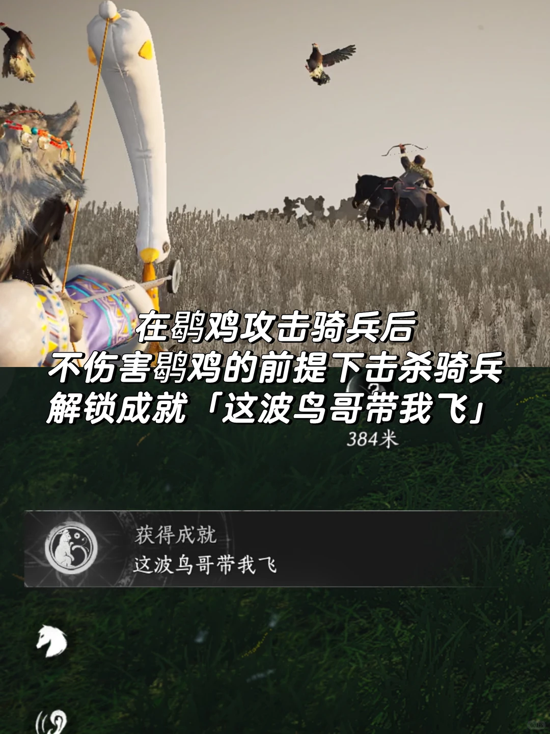 在鹖鸡攻击(gongji)骑兵后不伤(shang)害(hai)鹖鸡的前提下擊殺骑兵解锁成就「这波鸟哥带我飞』