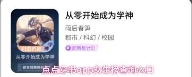 以上就是小编整理的点点穿书app女生榜查询入口最新内容,更多资讯相关内容,持续关注本站,希望大家喜欢。