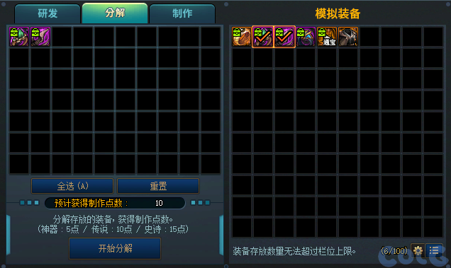 分解模拟装备可(ke)以获得点数