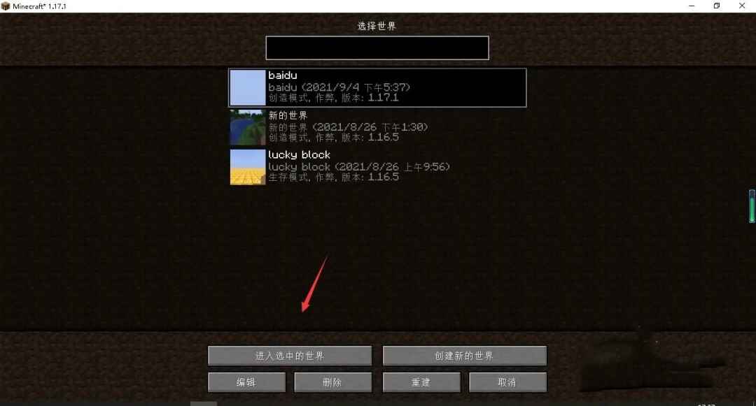 详(xiang)细(xi)答(da)案:打开(kai)我的世界,进入你存档,如图所示