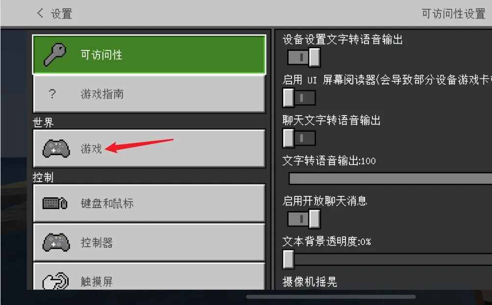点(dian)击(ji)设(she)置界面(interface)左侧游戏选(xuan)项。