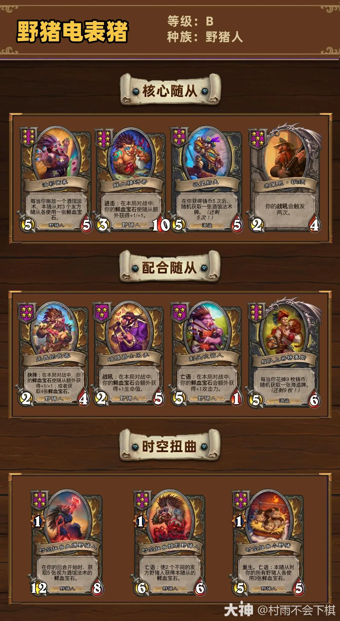 炉石传说34.2.2酒馆战棋野猪电表猪打法技巧内容及配图由入驻作者撰写或者入驻合作网站授权转载。文章观点仅代表作者本人,不代表本站立场。炉石传说34.2.2酒馆战棋野猪电表猪打法技巧文章及其配图仅供学习分享之用,如有内容图片侵权或者其他问题,请联系本站作侵删。