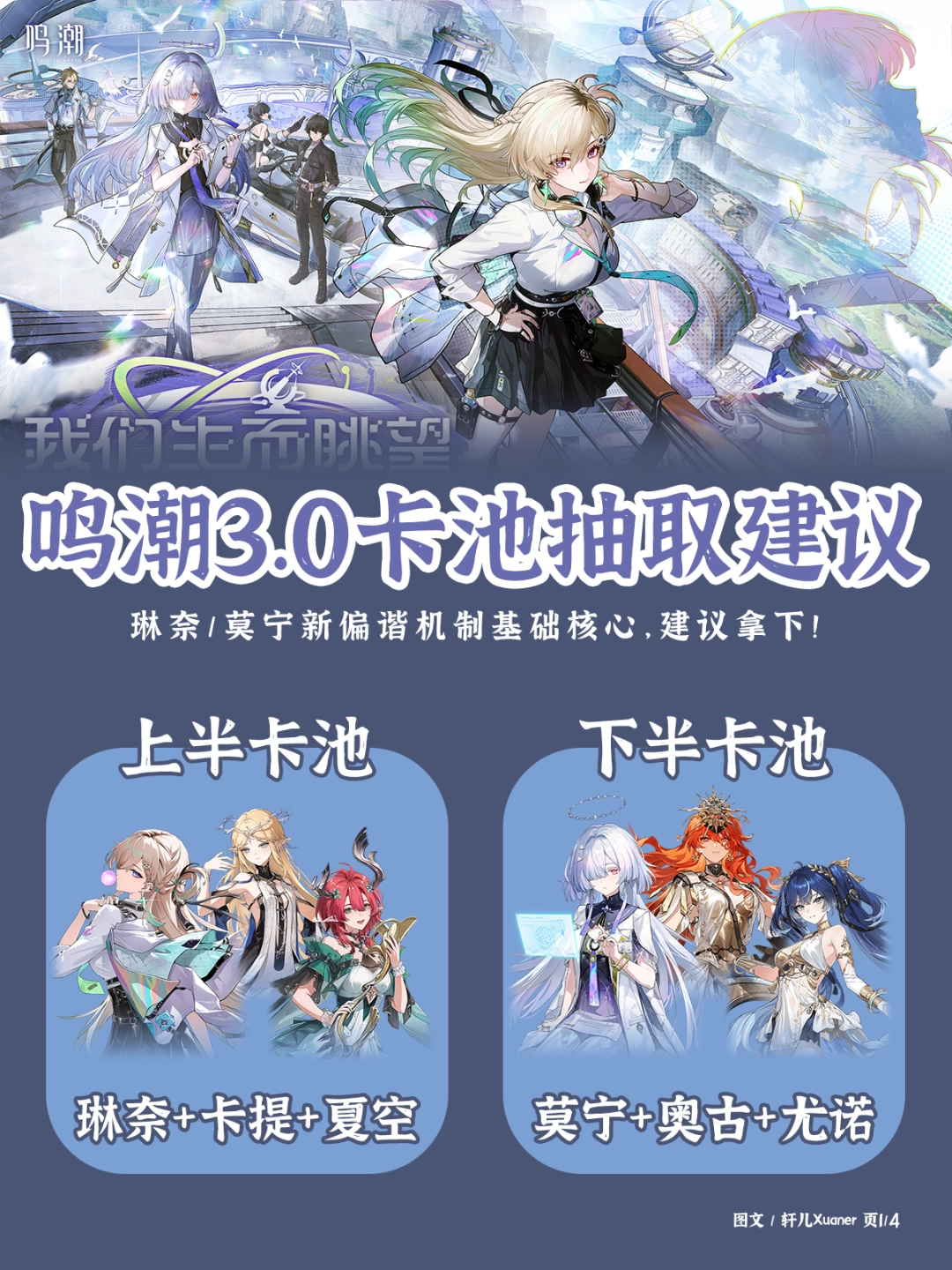 鸣潮3.0版本抽卡建议3.0上半卡池:琳奈+卡提希娅+夏空