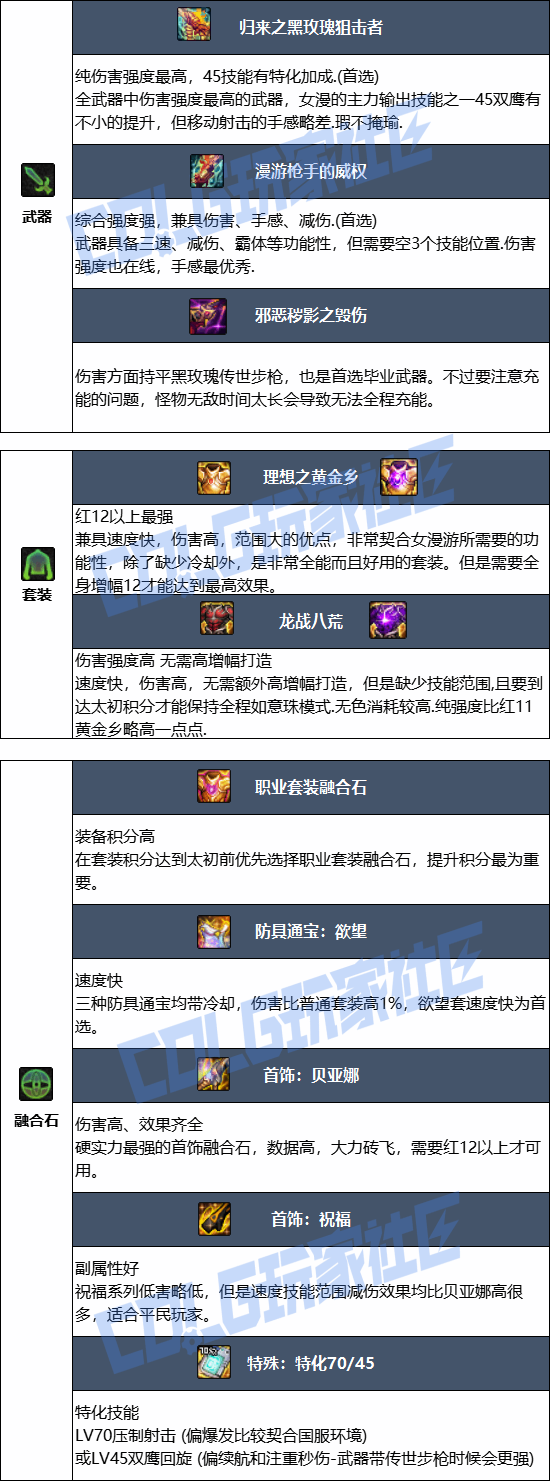 DNF狄瑞吉版本女漫游毕业装备建议:网友说官方开启了很多新手回归活动,现在回归可以快速成长,凑齐一身装备,比如女漫游,希望能给大家带来帮助。