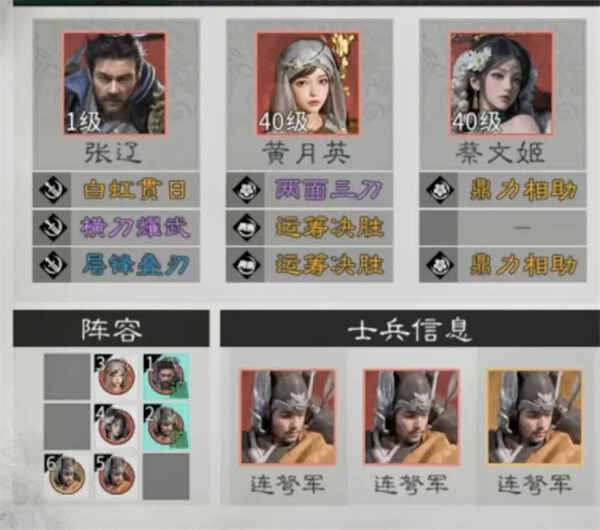 英雄站位:蔡文姬与黄月英不占用追击格,张辽需同时位于黄月英与蔡文姬的追击格上,以最大化触发追击效果。