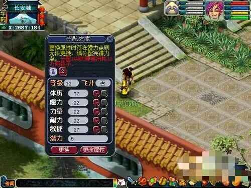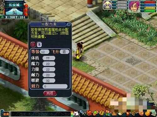 玩家可以到长安云游仙人(264,185)处,保存(baocun)自己的当前属性点分配(fenpei)方案,只(zhi)需途径一定消耗便可更换成原来所保存(baocun)的属性分配(fenpei)方案,保存(baocun)次数不限,保存(baocun)方案三套,每天更换属性次数暂定两次。