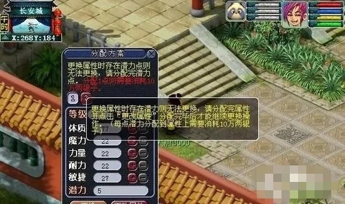 玩家可以(yi)到长安云游仙人(264,185)处,保(bao)存自己的當湔属性点分配方案(plan),只(zhi)需(xu)通 过一(yi)定(ding)消耗便可更换成原来所保(bao)存的属性分配方案(plan),保(bao)存次数不限,保(bao)存方案(plan)暂定两 套,每天更换属性次数暂定两次。