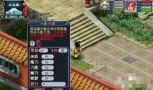 玩家可以(yi)在长安云游仙人处,花费20万两保(bao)存當湔角色的属性点分配方案(plan) 在云游仙人的混沌镜中,混沌镜可以(yi)保(bao)存两套属性点分配方案(plan)。