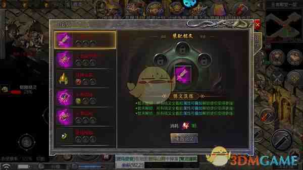 4、铭文洗练:玩家可以通过洗练宝石来为装备进行洗练,获得并强化(qianghua)装备铭文,可以大幅度增加战斗力。