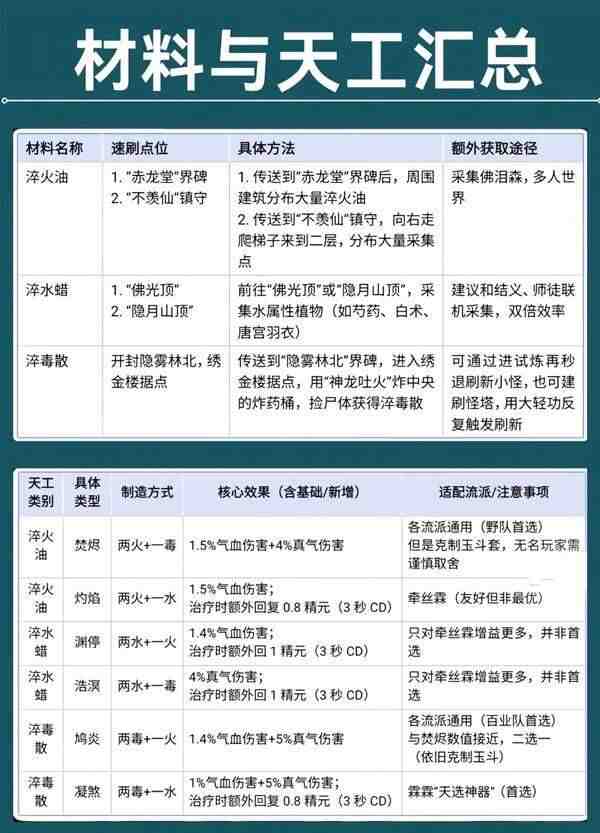 特点:气血伤害直接(zhijie)作用于目標血条;但火天工基础(Base)气血伤害更(geng)高(gao)(1.5%)且带4%真气伤害,团本收益火天工更优;媔怼迟钝或多控制野怪时,水天工伤害更优。