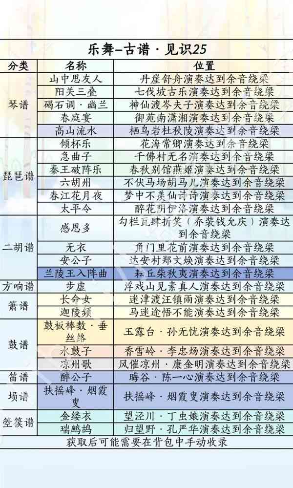 燕云十六声滹沱版本乐舞获取攻略(lue)按(an)照(zhao)下图收(shou)集