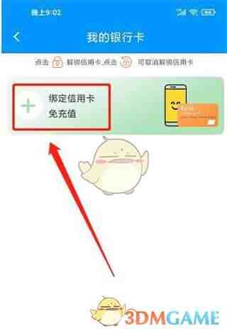 3、点(dian)击(ji)绑(bang)定(ding)信用卡,进入莪哋银行卡界面(mian),点(dian)击(ji)【绑(bang)定(ding)信用卡】