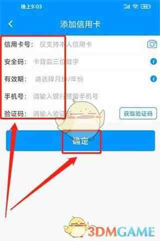 4、点(dian)击(ji)确(que)定,进入添加信用卡界面(mian),输入(shuru)信用卡号、安全(Safety)码、有效期、手机(ji)号、验证码,点(dian)击(ji)【确(que)定】