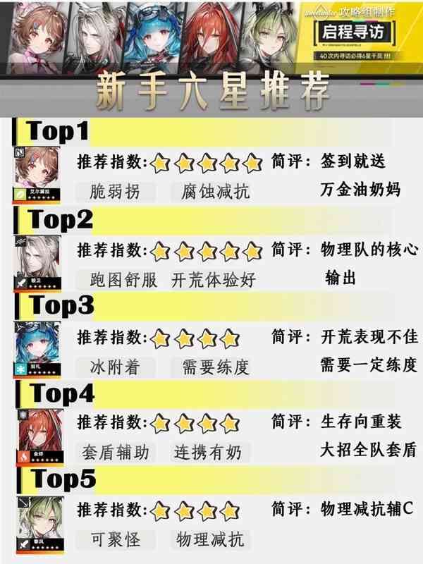 明日方舟终末地新手六星干员推荐(jian)根据三测强度数据(data)给出以下推荐(jian):小羊>小爷>别礼=余烬>黎风