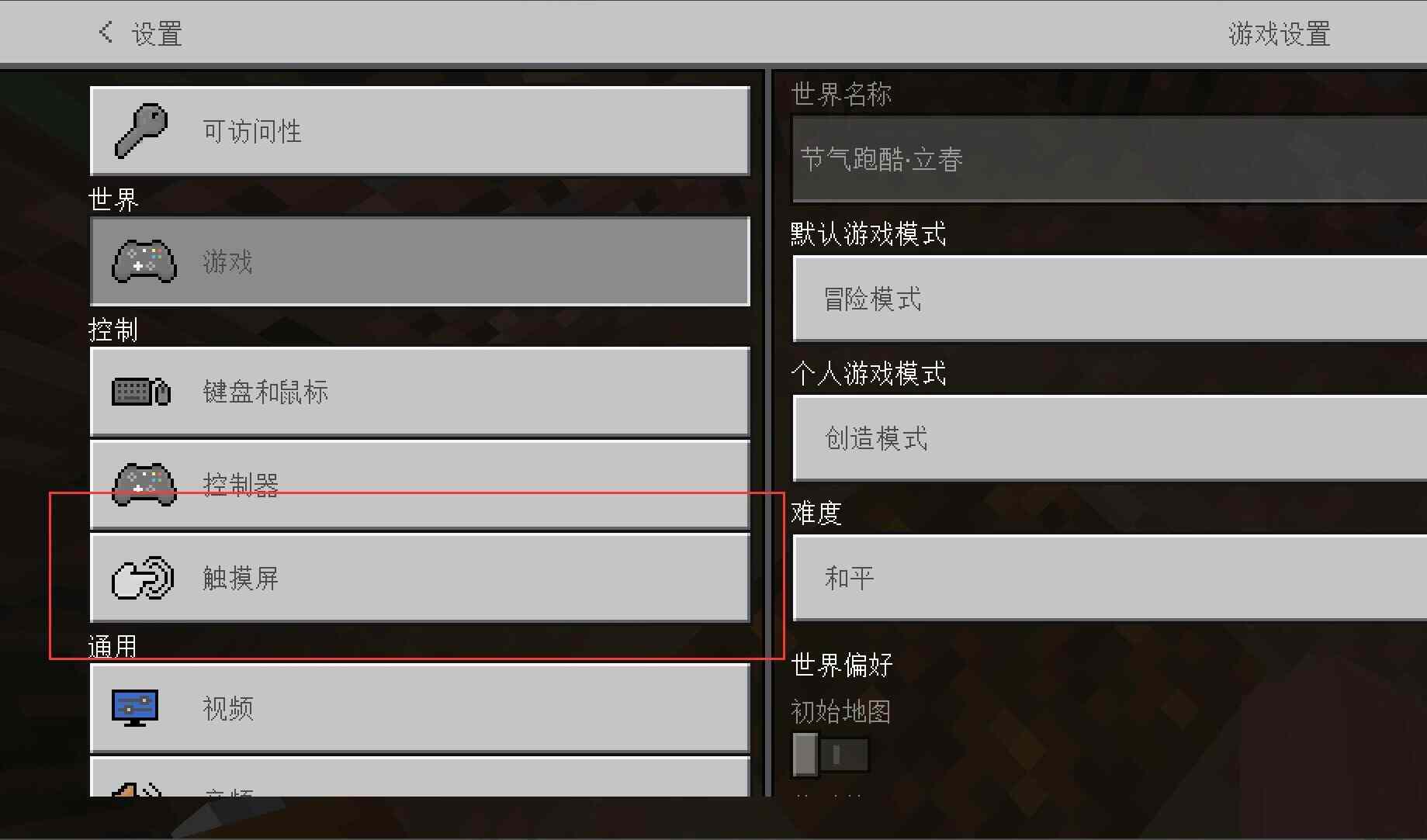 我的世界怎样更改移动键大小2026我们直接在游戏界面中直接点击返回键;然后,在这里选择设置选项;接下来,我们直接选择触摸屏分类;找到尺寸大小的这个调整界面进行修改,大家可以看看接下来的内容。